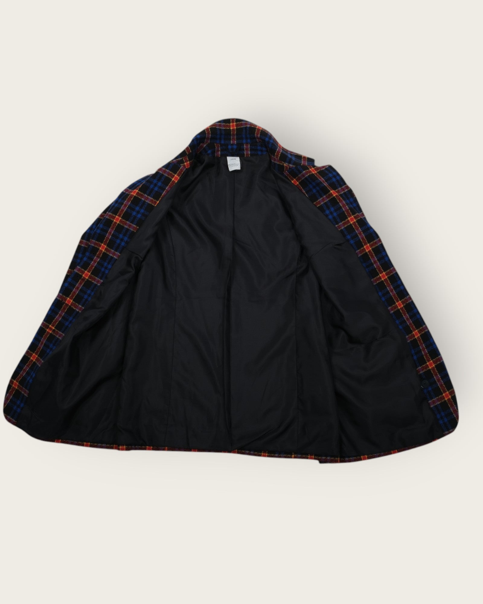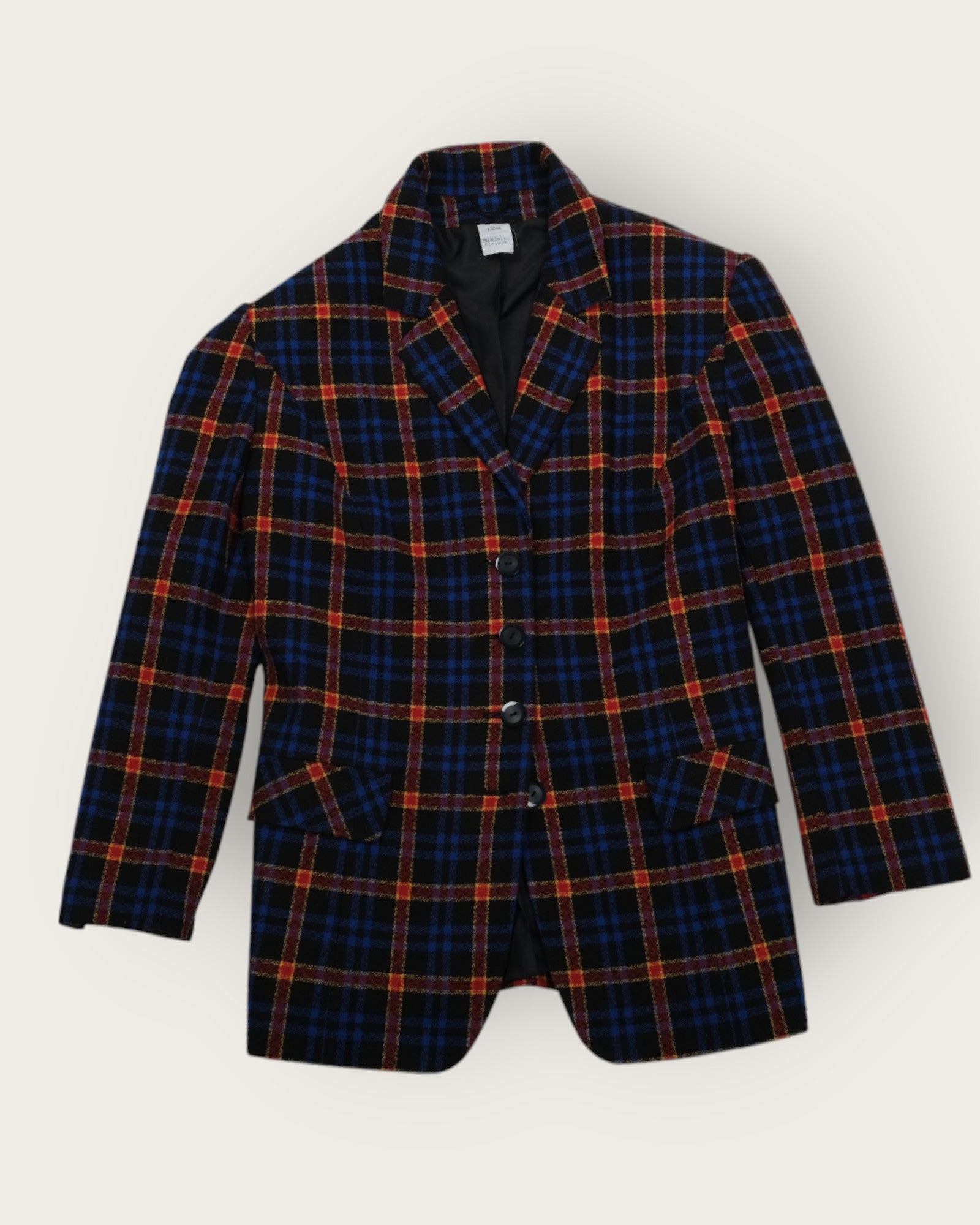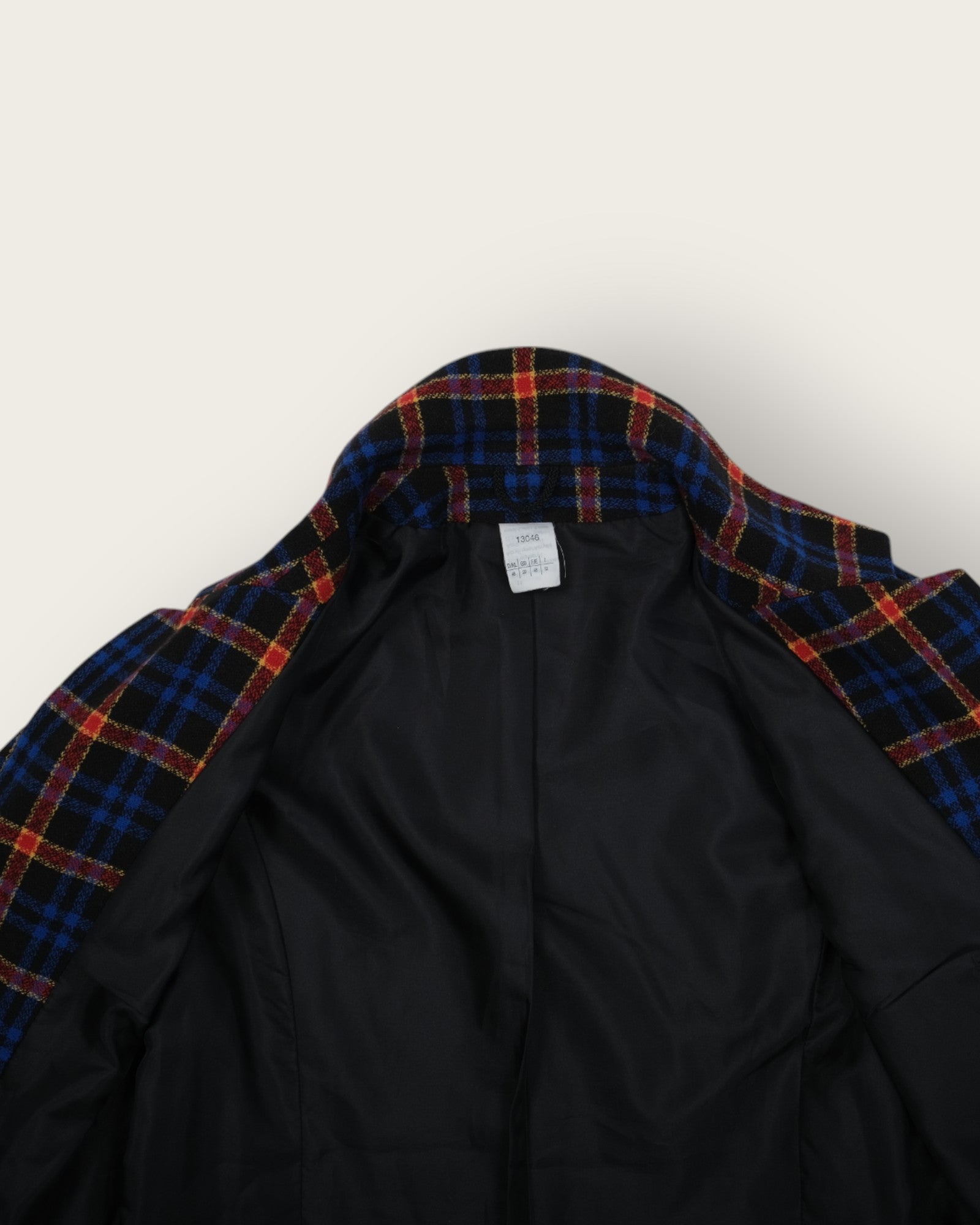 An elegant twist on traditional tailoring, this vintage mint green blazer features ornate jewel-like buttons and a clean, collarless silhouette. Its longline cut flatters the figure while adding a feminine charm to minimalist looks.